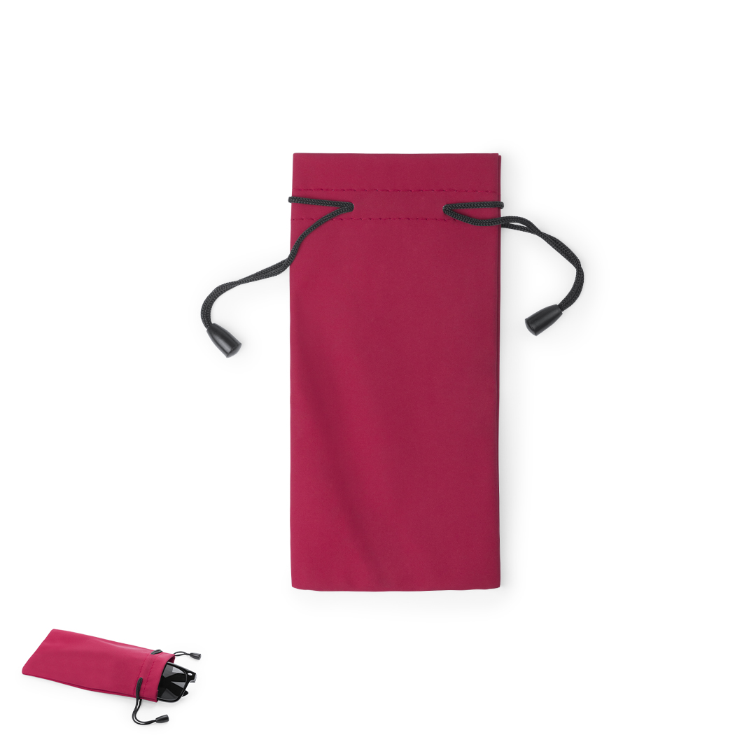 Funda para gafas en suave poliéster y amplia gama de divertidos colores. Con cordones autocierre.