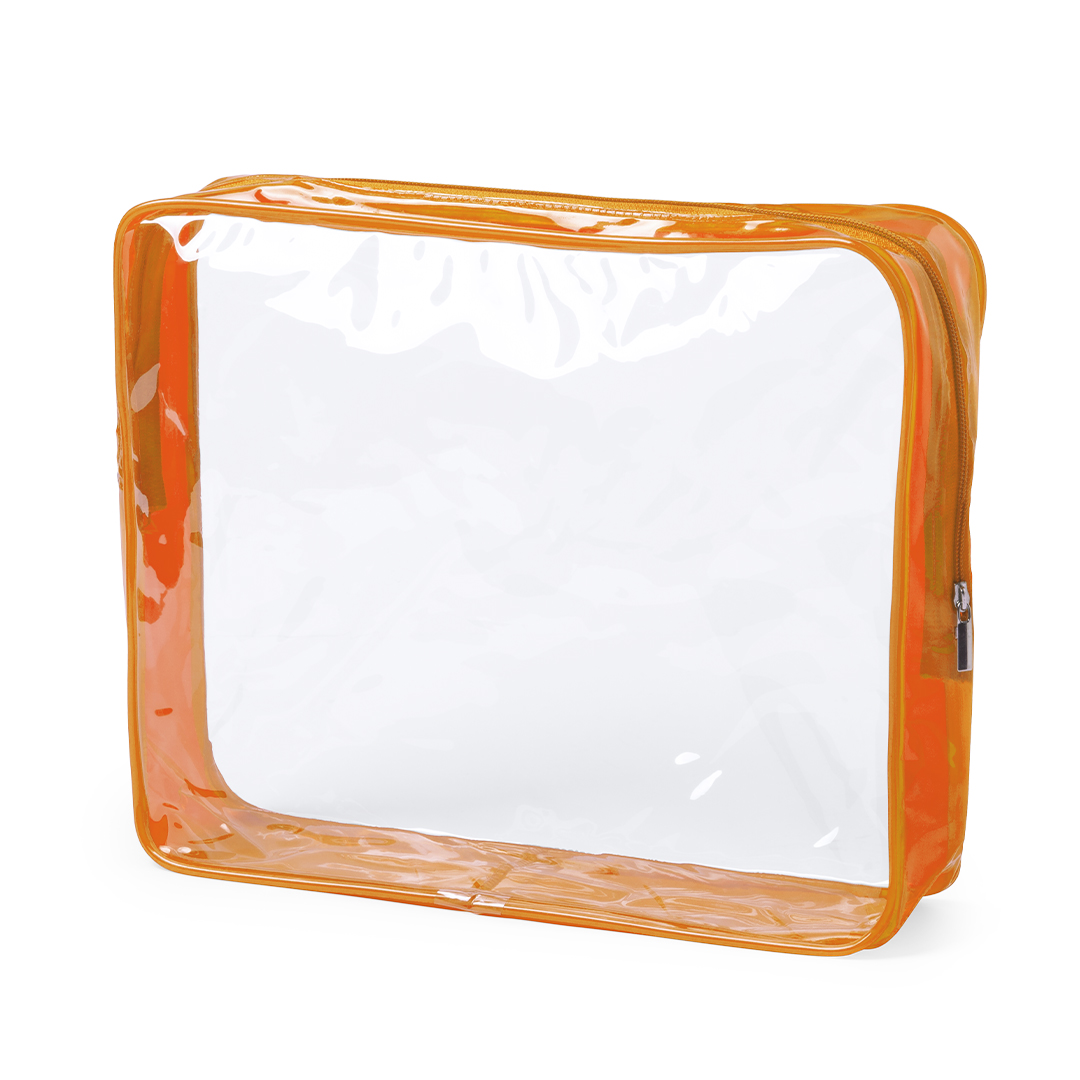 Neceser multiusos en resistente material PVC. Diseño en combinación de materiales translúcidos y transparentes. Disponible en vivos colores, con cierre de cremallera a juego.